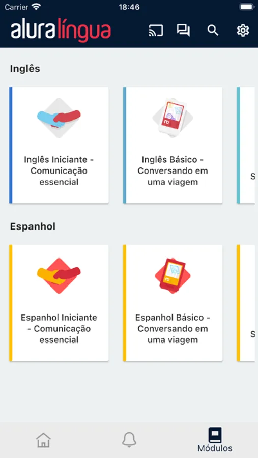 Reinvente seu futuro, dentro da sua casa! Na Alura Língua você reforça e aprimora seu inglês e espanhol com didática diferenciada e muita prática!