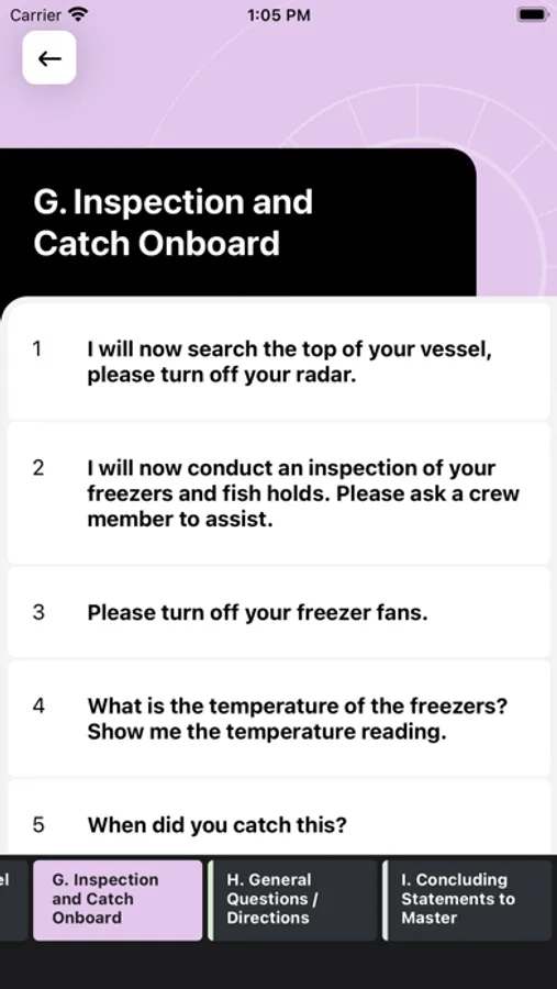 Effective communication between a fisheries officer and the master and crew of a fishing vessel is very important, however a language barrier is commonly encountered.