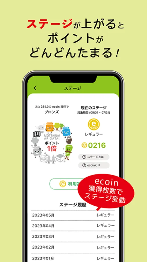 ・アプリでeポストを利用すると、投入量に応じてステージランクアップ!