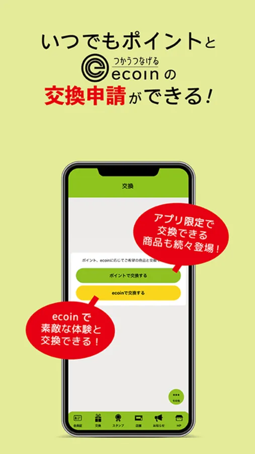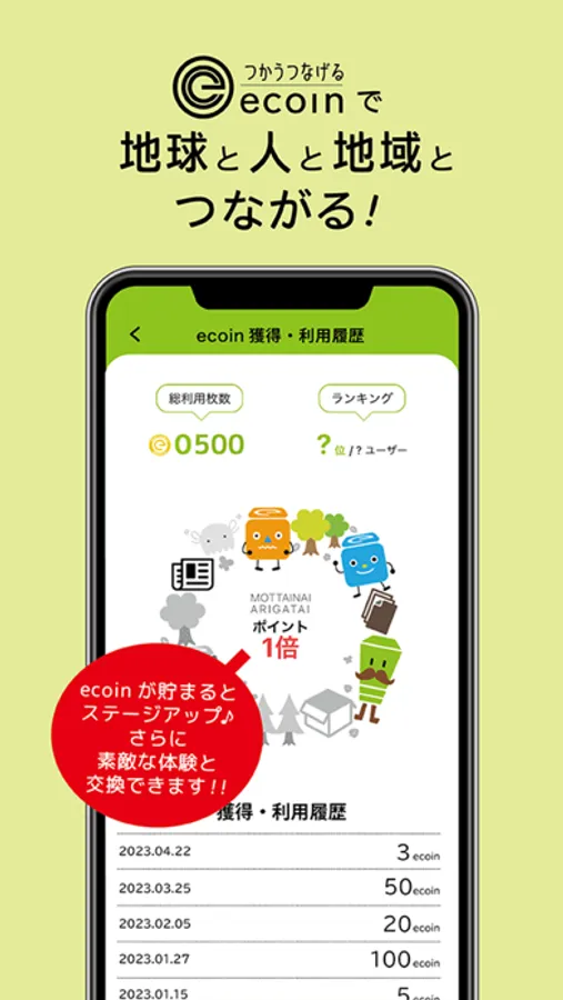 ・アプリを使用すると社会貢献活動につかえるeコインがもらえる