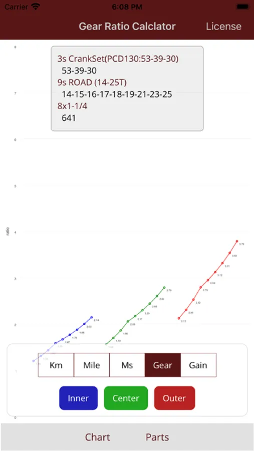 This is a gear ratio calculation application for bicycles with external gearboxes such as road and MTB.