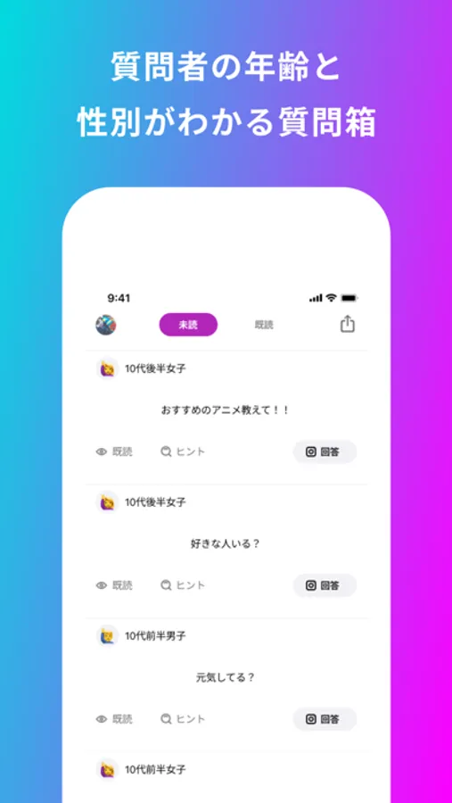 Sqoopは質問者の年齢と性別がわかる質問箱アプリです。