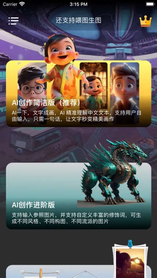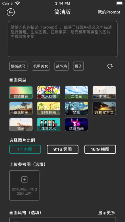 Focus solely on AI painting, without any fancy features, just a simple description can turn into a beautiful artwork in seconds. It also supports highly customizable input and can generate images based on existing pictures, which can be used to create avatars, phone wallpapers, and desktop wallpapers.