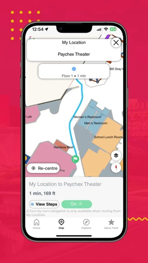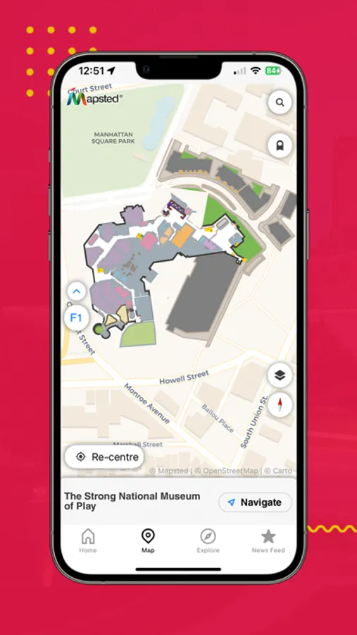 The Strong Museum Indoor Map will provide step-by-step directions throughout its exhibits and public spaces. Guests may view the indoor maps, search for a specific exhibit or space, and navigate to a selected destination. The “Blue Dot” representing the guest’s current location helps guide them from their point of origin to their destination.