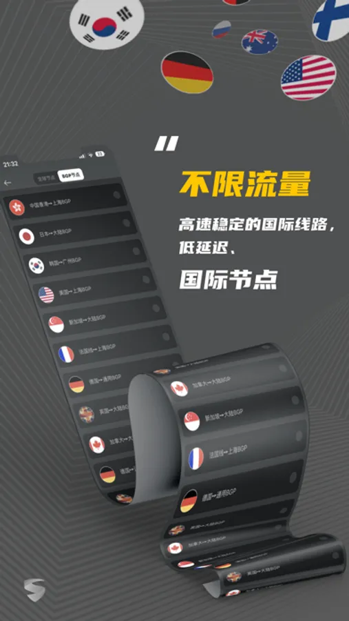 使用高速稳定的国际线路转发服务,一键连接不限流量;