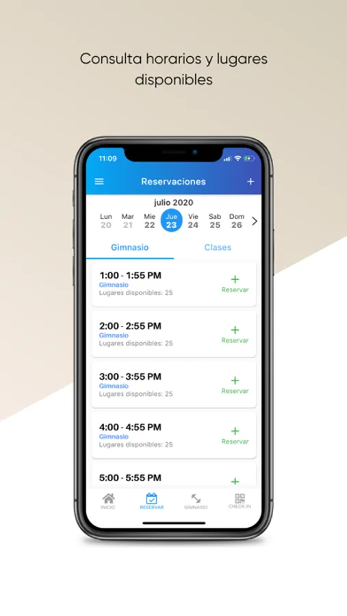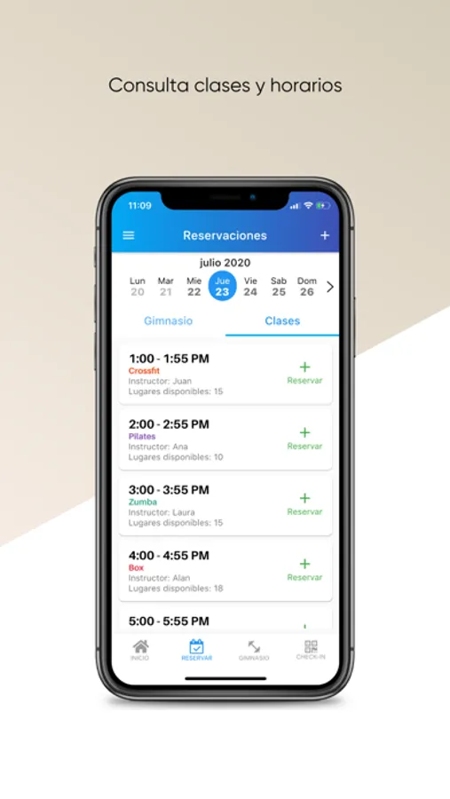 Conoce los horarios de tu clase o área favorita disponibles en tu gimnasio desde la app y realiza una reservación al instante con tocar un botón.