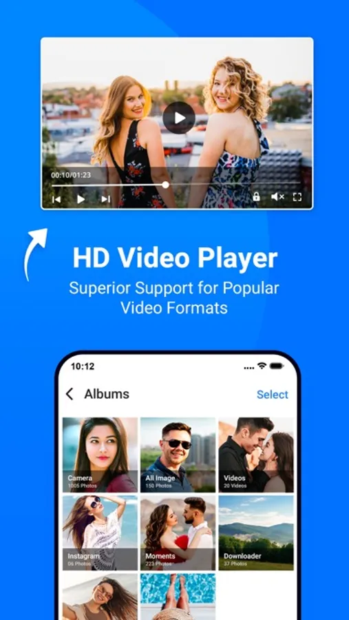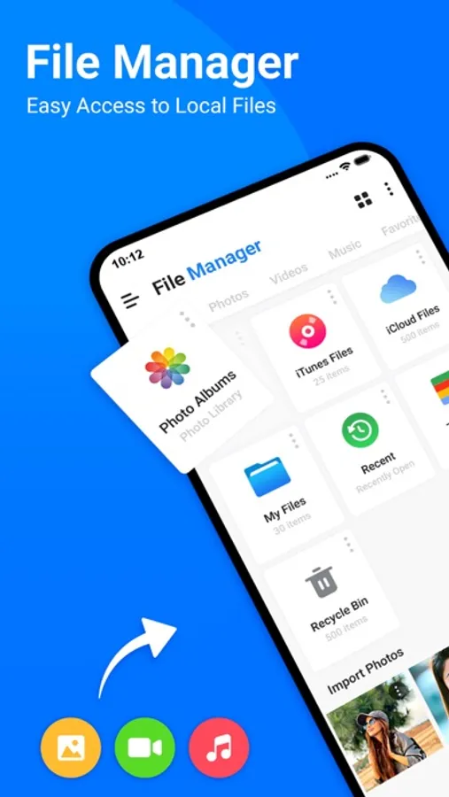 • Organized collections - files categorized in Downloads, Recent,Photos, Videos, Music, Documents and Apps