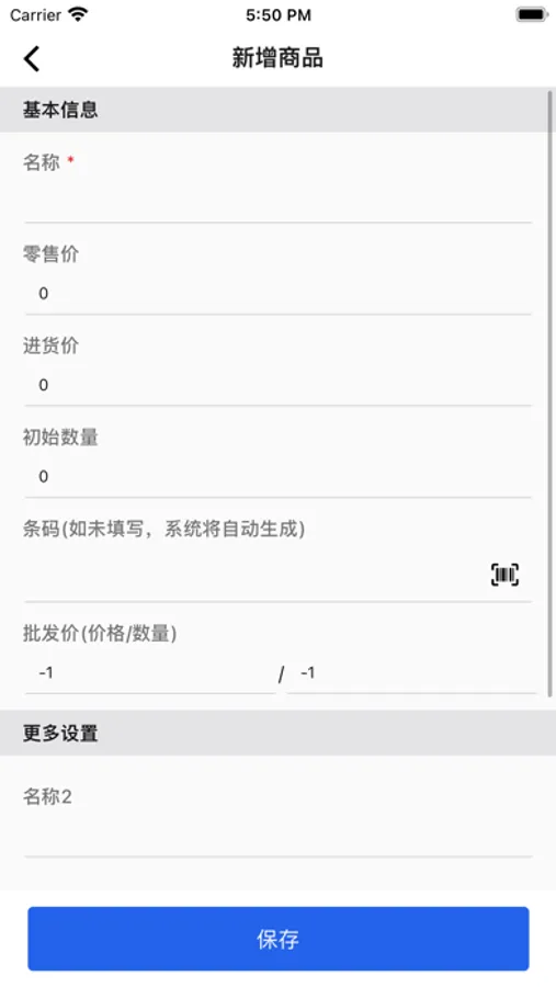 新增商品:零售商可以在应用程序中轻松添加新商品,包括名称、描述、价格、库存数量等。这使得管理商品变得更加方便。