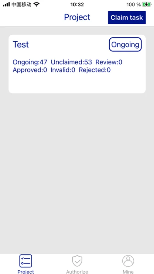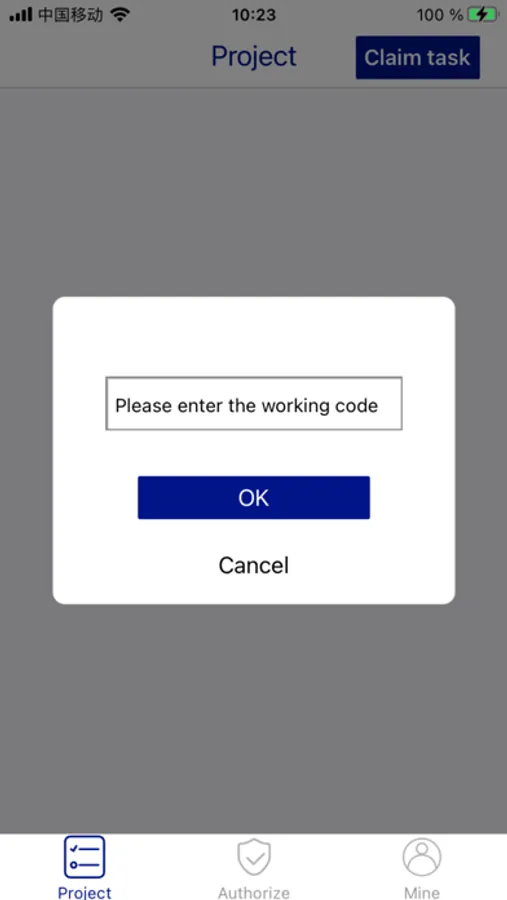 After logging in, enter the work code to claim tasks (please contact your supplier or project manager to obtain the word code).