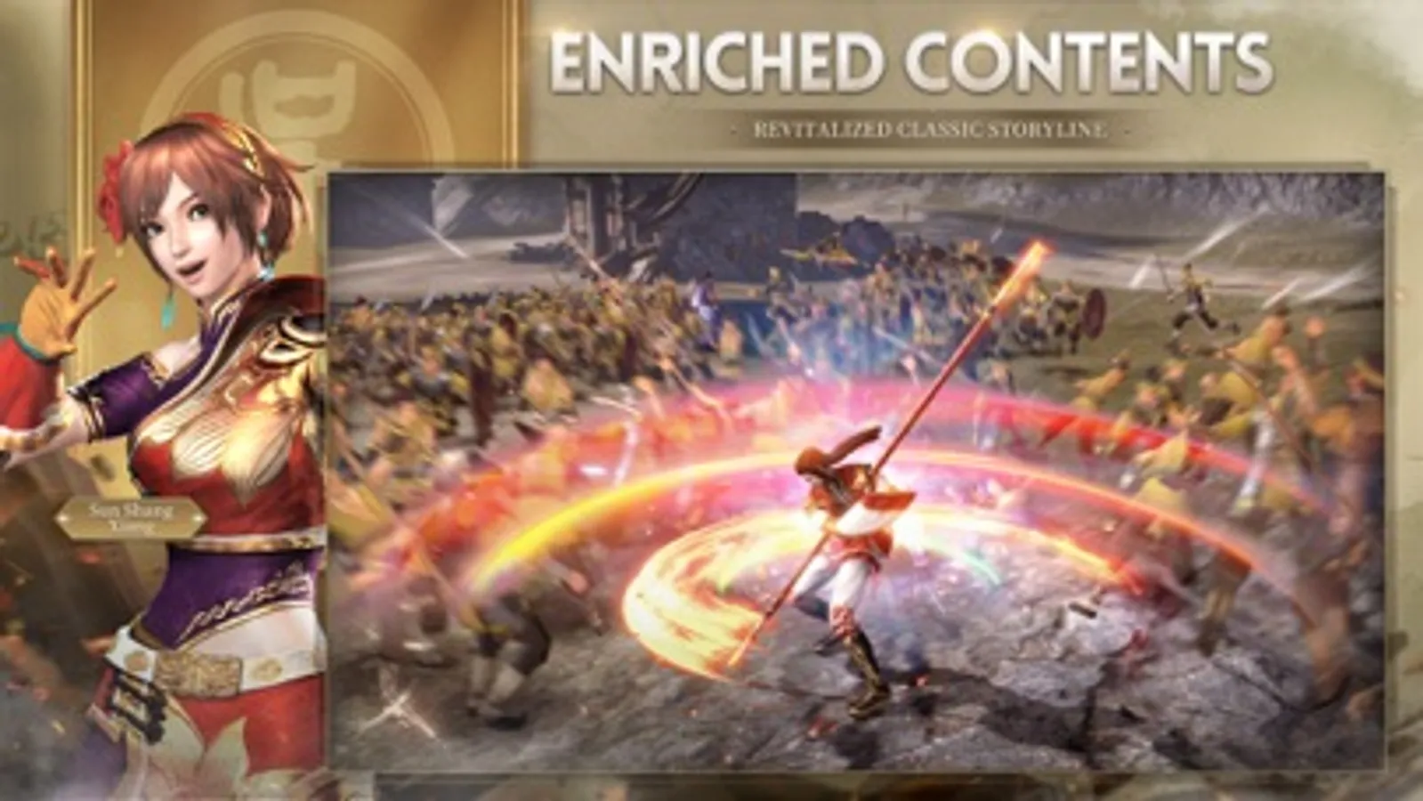 Experience "unrivaled" battles with real-time switching, double-key combos, and free-flowing moves. Enjoy exhilarating army-sweeping action with hundreds of on-screen characters.