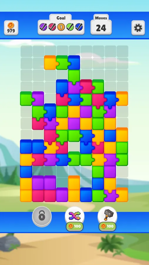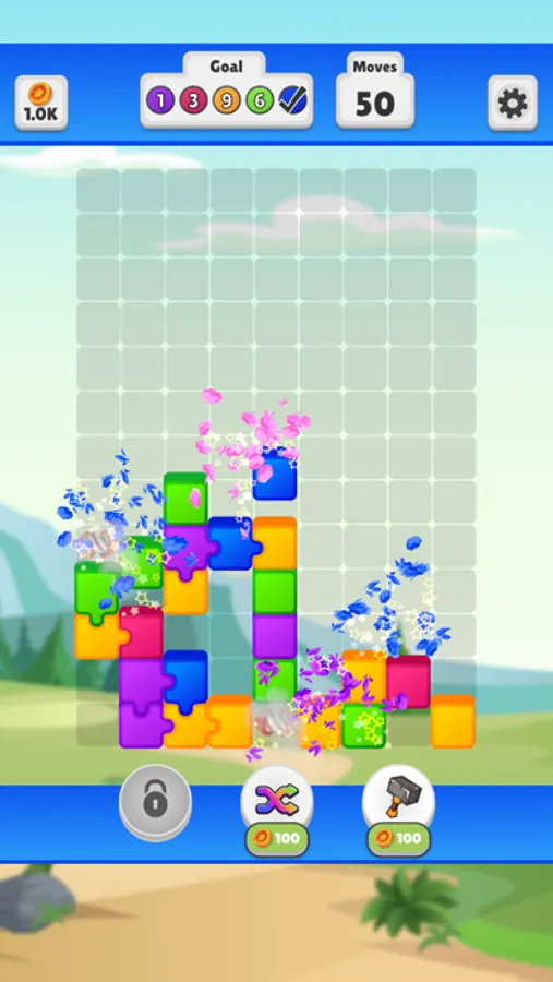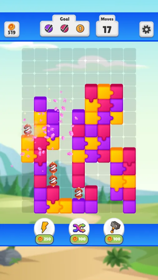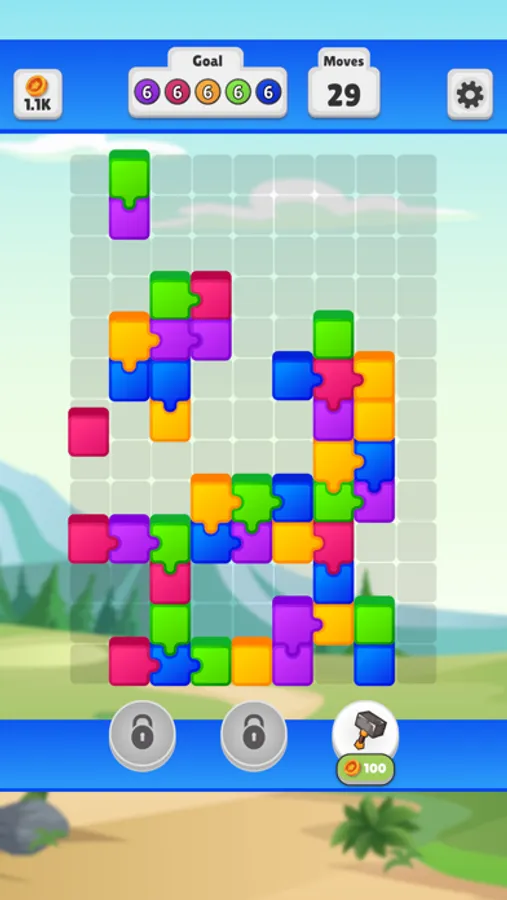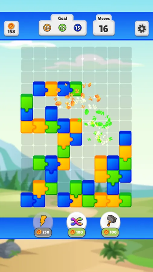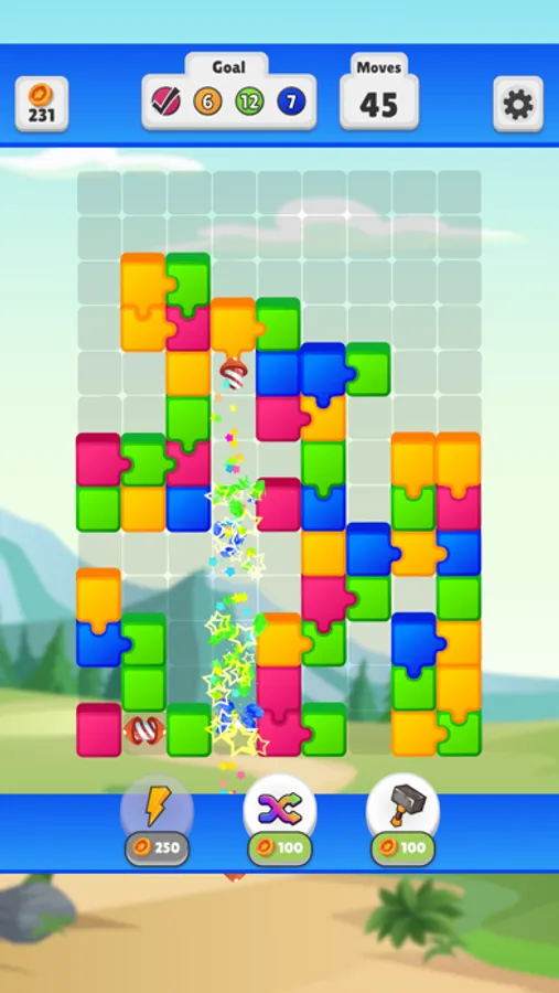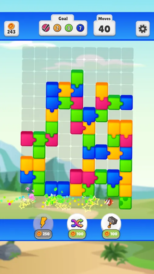 Jigsaw Blast is a match-three blast puzzle game where you horizontally slide the sets of blocks in the grid to make matches by color.