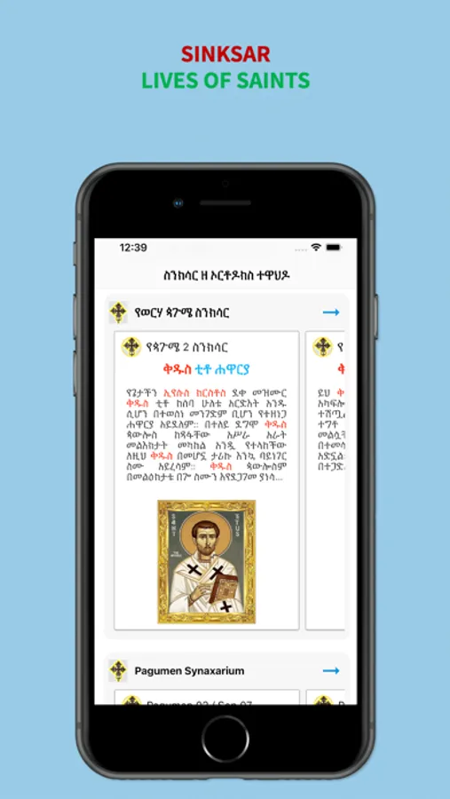 Discover the rich spiritual heritage of the Orthodox Tewahedo Church with Sinksar (Synaxarium), now available as a convenient mobile app. Immerse yourself in the captivating stories and histories of Christian Saints from the Oriental Orthodox Church. Whether you're seeking to deepen your knowledge of Christianity or enhance your Orthodox Tewahedo Church life, this app is your gateway to wisdom and inspiration.