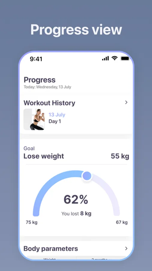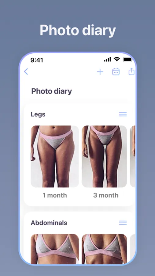 The app has a workout plan for all muscle groups. We will work on abs, legs, chest, glutes and more. You can track your total progress by vieng workout history, a photo diary to motivate yourself, and body metrics;