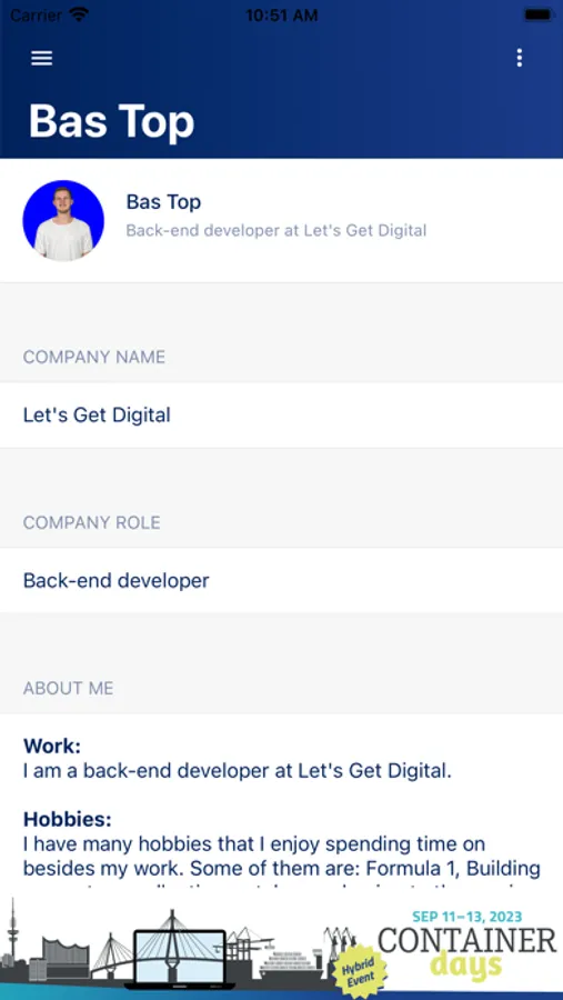 Event app for ContainerDays 2023 including agenda, speaker, network and much more.