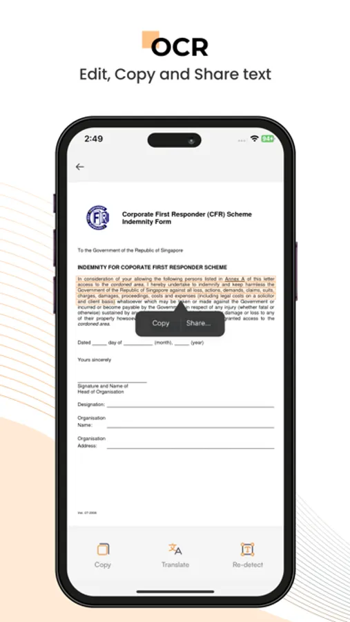OCR Technology: Go Scanner uses advanced OCR (optical character recognition) technology to recognize text in your scanned documents, so you can edit and search your documents easily.