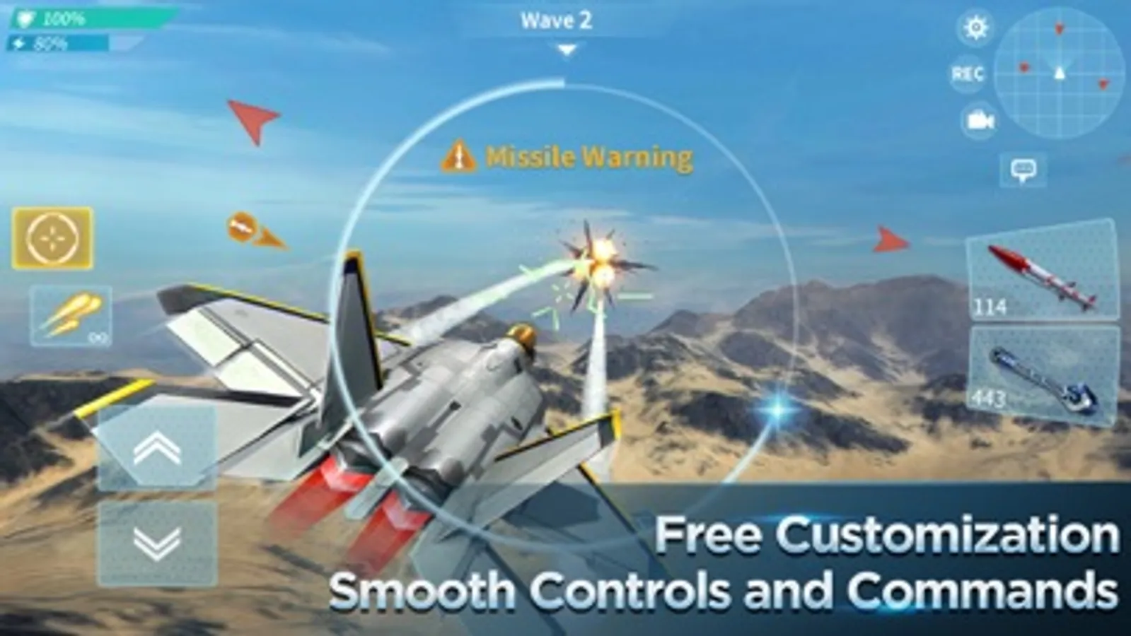 - Arsenal of Weapons: Arm your aircraft with powerful air-to-air missiles, air-to-surface missiles, and cannons for peak performance. Use flares to decoy enemy fire.