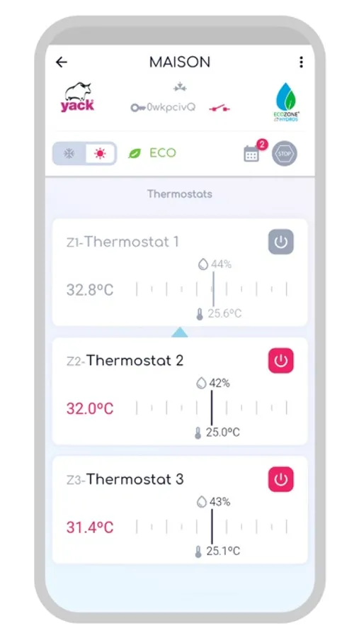 - Réguler la température dans des pièces différentes sur du plancher chauffant, du ventilo-convecteur et/ou du radiateur
