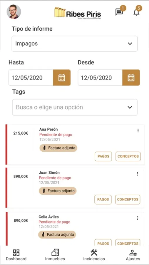 -Ver y descargar Reportes de rentabilidad, declaración de la renta, liquidaciones, impagos…