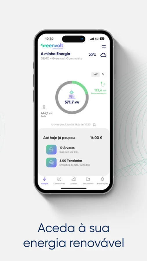 - Aceder ás suas faturas e todos os documentos partilhados pela empresa Greenvolt Comunidades