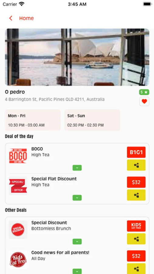 Deal Diner helps customers find local restaurants offering deals and cheap meals. Find a cheap steak night, Cheap Parmi Night, Kids eat free restaurant and more by using the very user-friendly searching options. Search by cuisines, prices, location & date. You can even use the map option to look for restaurants close by so you don't have to go far. Whether you are budget conscious, student, traveller or just love a good bargain, Deal Diner is the app for you.