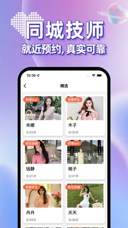 多位青春靓丽技师让您畅选,技法娴熟,倾心服务,替您解忧,来约陌陌按摩,找到属于您的私人定制技师,满足您的需求。