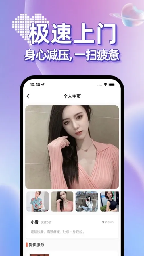同城技师精选,提供上门按摩,到家SPA,养生保健,舒心足道等多项服务。