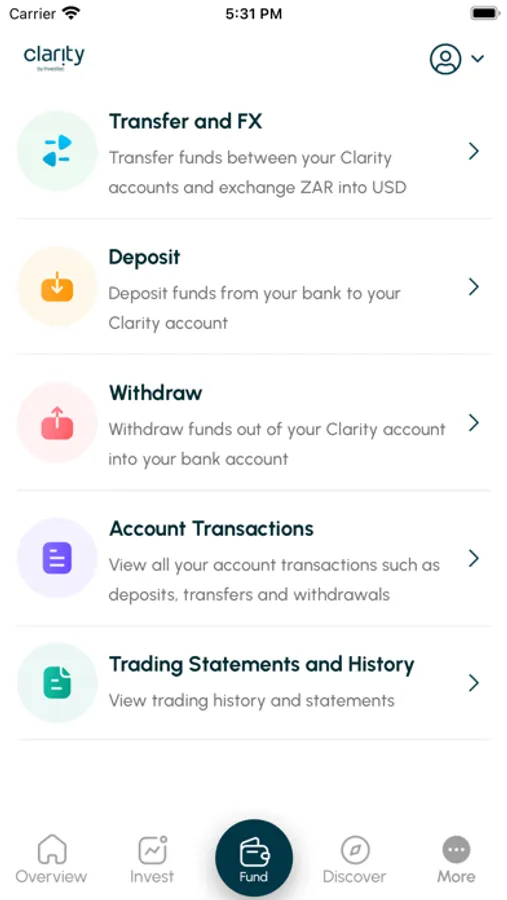 Clarity puts the independent investor squarely in the driving seat, allowing you to experience the freedom of investing by yourself. And, because Clarity is powered by Investec, one of the world’s most trusted and respected financial institutions, you can trade across the globe with confidence and the assurance that you are not alone.