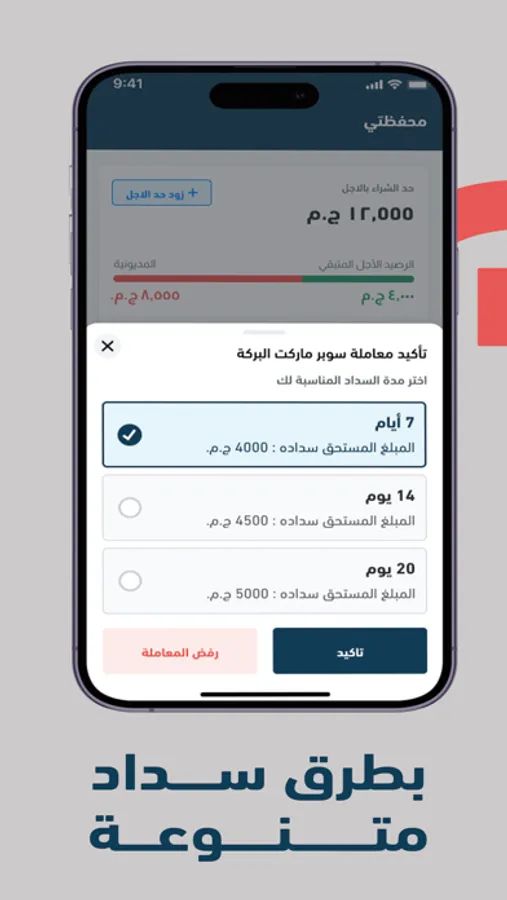 اشتري بضاعة محلك وادفع بالآجل على المدة اللي تريحك بطرق سداد مختلفة.
