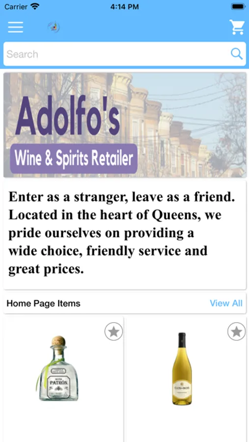 Browse a wide selection of wines and spirits, with real-time inventory. Aldolfo's is a friendly, welcoming retail establishment in Queens who truly appreciates your business. Use our app to place orders for in-store pickup or delivery.