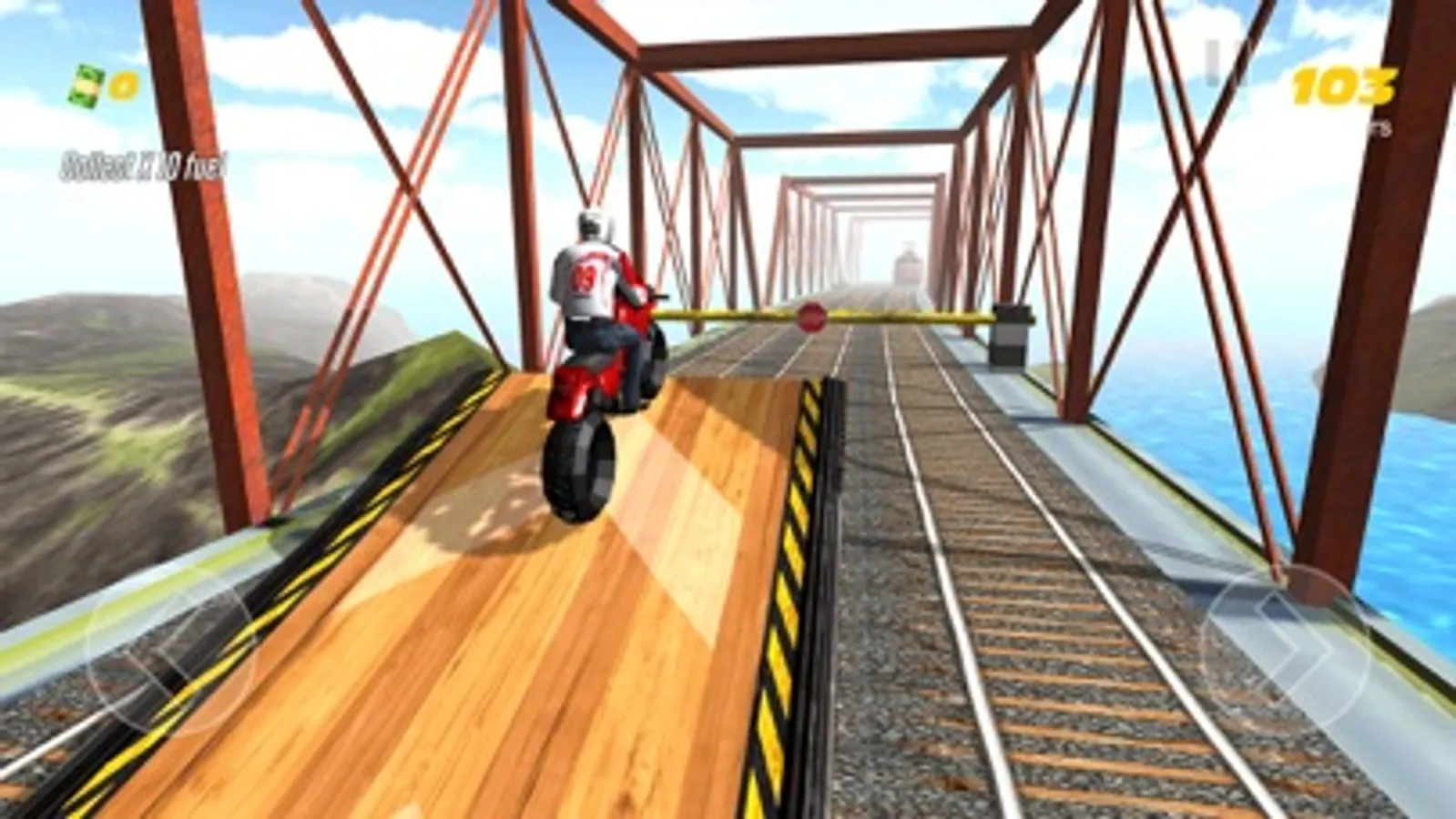 Hey, wanna show of your stunts? Here you can ride on to the ramps and jump on to the top of the oncoming train!