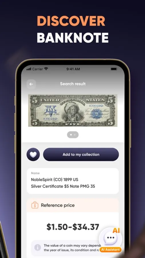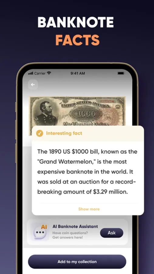 Have any questions about a banknote? Our AI assistant is here to guide you and answer all your queries, making your banknotes exploration seamless and enjoyable.