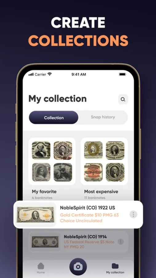 Record and store your collections within the BanknoteScan app. You'll never lose track of your collectibles and will always be aware of their value. Arrange your collections as you see fit.