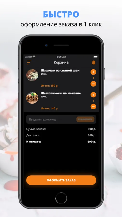 Скачивайте наше приложение, оформляйте заказ и наслаждайтесь любимой едой, где бы Вы ни были! Приятного аппетита!