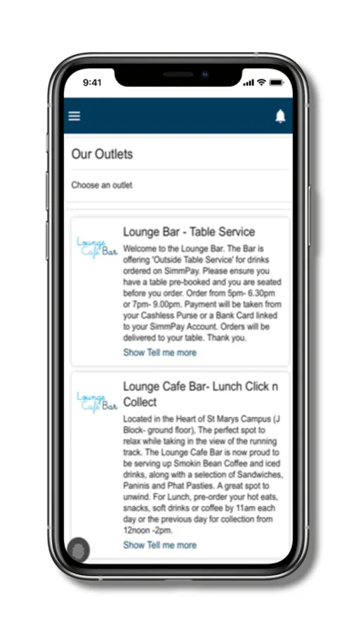 SimmPay is a Cashless Rewards and Pre Order solution for the students and staff of St Mary’s University, enabling you to get fantastic promotional discounts and faster service when you use the app or card in any of the participating catering and bar outlets. Online Pre Orders can also be placed via the app.
