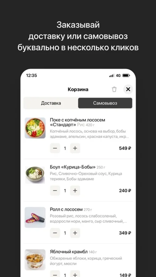 — Сделать заказ быстро и с мгновенным подтверждением через приложение;