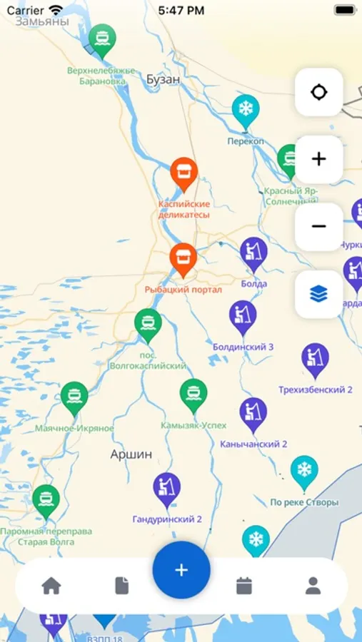 Личный кабинет пользователя позволяет вам создавать гео-закладки для ваших любимых рыбацких мест, а также строить к ним маршруты.