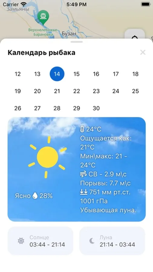 Используйте наше приложение "Точка клёва" для получения информации с картографической привязкой, включающей организованные места для рыбалки, базы отдыха и даже геоинформационные слои паромов и переправ. Благодаря календарю лова вы сможете планировать свои рыбацкие поездки, учитывая прогноз погоды, предоставляемый непосредственно в приложении.
