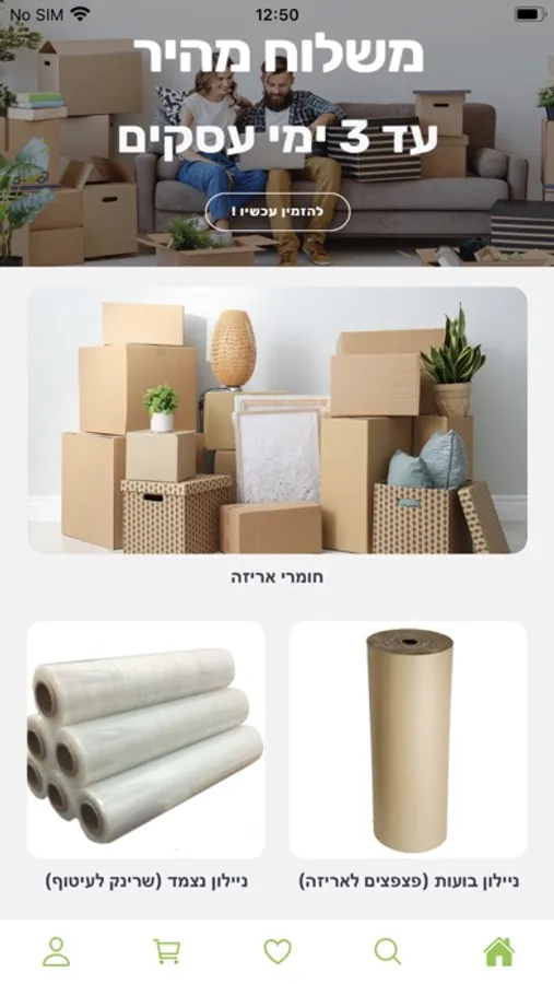 אנו מספקים משלוחים של מוצרי האריזה השונים עד בית הלקוח, בזמן שאינו עולה על 3 ימי עסקים לכל היותר.