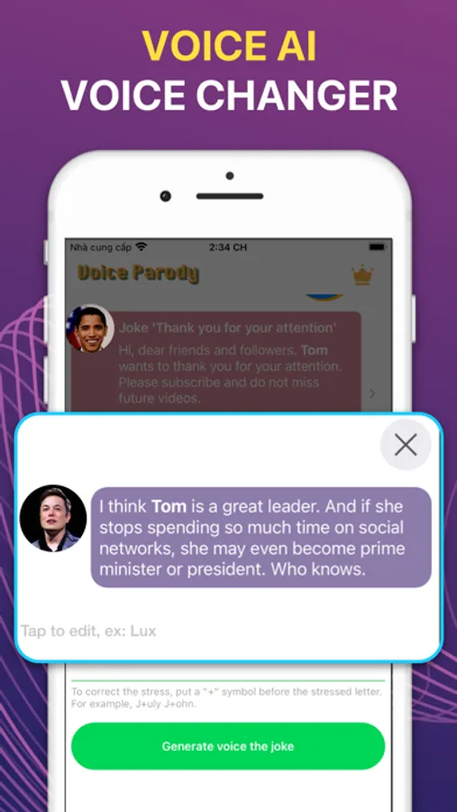 Looking to bring laughter to your friends or add a humorous twist to your crush on a celebrity? Look no further! Our AI technology generates the most incredible voices that will leave everyone in awe. Imagine sharing celebrity-like voices with your friends on WhatsApp, cracking jokes, and creating hilarious moments together. And if you're an anime enthusiast, we've got you covered with a collection of over 52 voices, enabling you to bring your favorite series to life like never before. Get ready to unleash the power of our amazing voice generation technology!