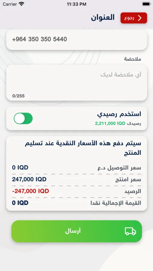 يرجى ملاحظة: في الوقت الحالي، تكون خدماتنا متاحة حصريًا للتوصيل داخل العراق. ومع ذلك، نقوم باستمرار بالتوسع لخدمة المزيد من البلدان في المستقبل القريب. ترقب التحديثات!