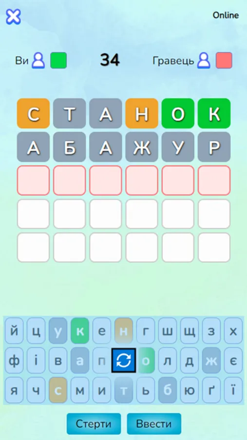 але не в тому місці, то вона буде жовтою, а якщо літера відсутня в слові, то вона залишиться сірою.