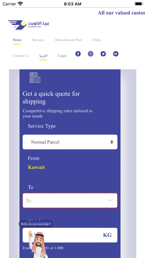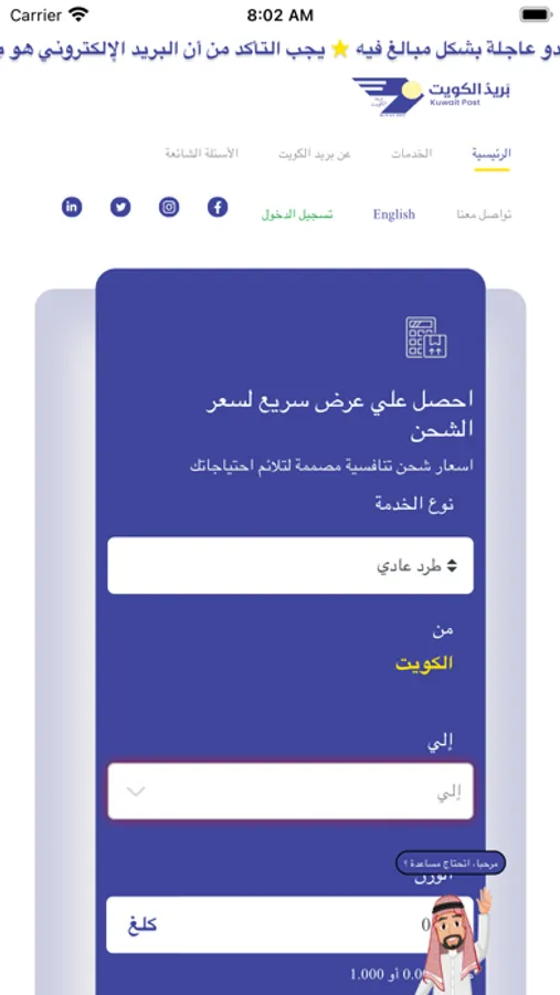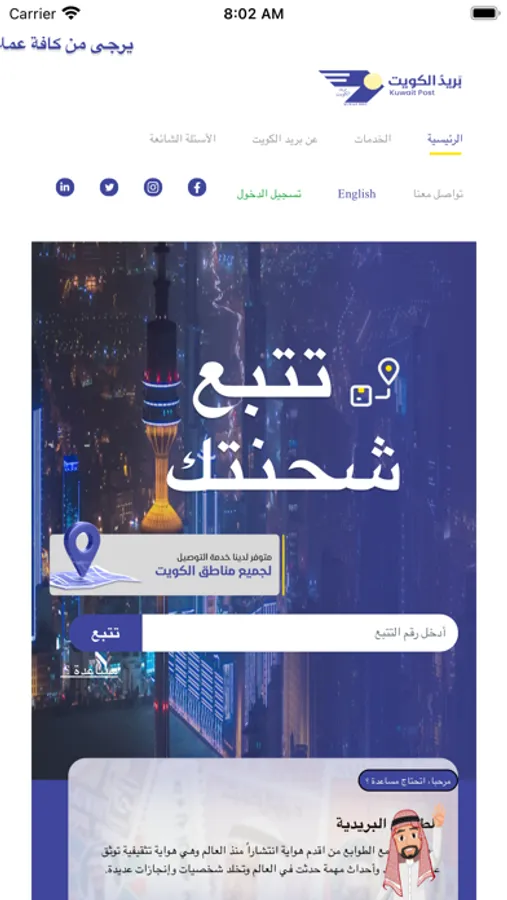 The possibility of receiving parcels and express mail at Al-Masayel center