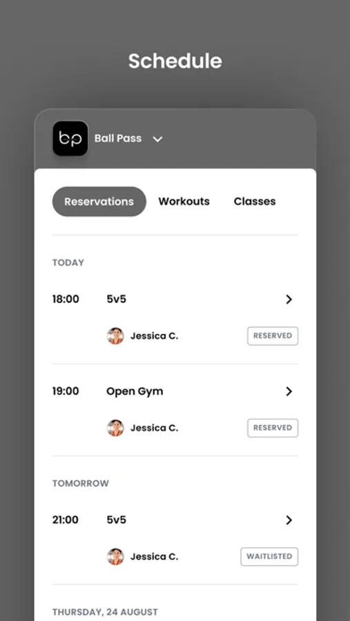 For members of Ballpass to sign up for basketball sessions, reserve courts, and general account management like updating headshots and credit card on file.