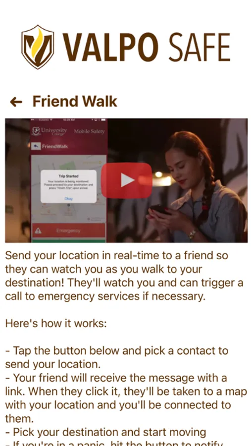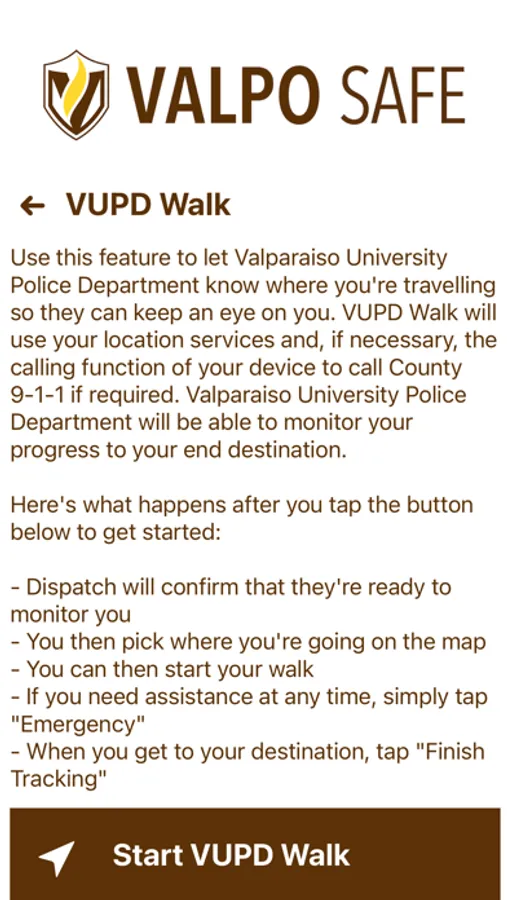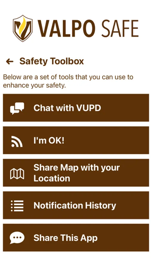 - Safety Notifications: Receive instant notifications and instructions from Valparaiso University safety when on-campus emergencies occur.