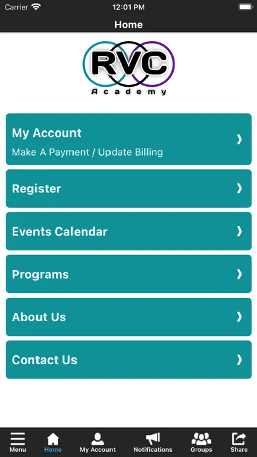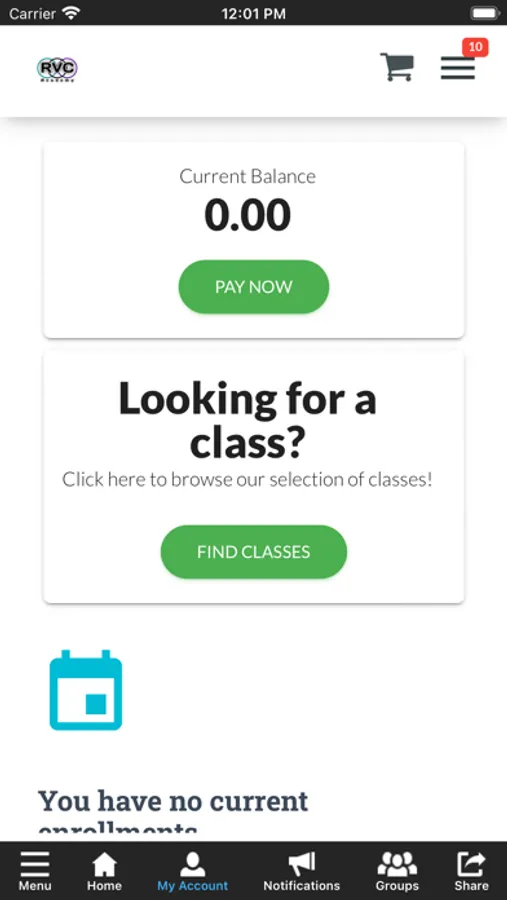 The RVC app allows you to manage your account with ease, register for classes, parties, and special events. You'll also receive important notifications about class changes, closings, registration openings, special announcements, and upcoming events.