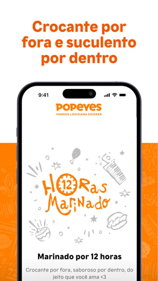 Com o saboroso diferencial de ter sanduíches feitos 100% com carne de peito de frango marinada por, no mínimo, 12 horas e empanada nos próprios restaurantes, o POPEYES® oferece uma experiência única de sabor.