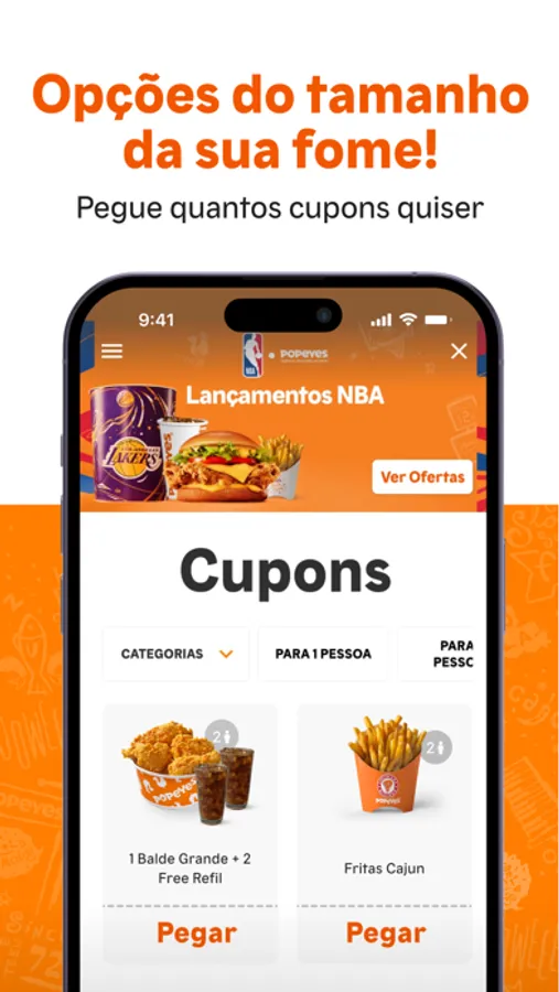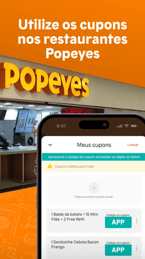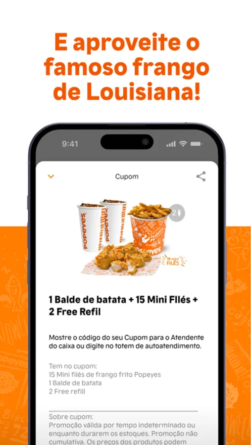 Baixe o App do Popeyes e aproveite nossas ofertas para comer sozinho ou dividir com a família!