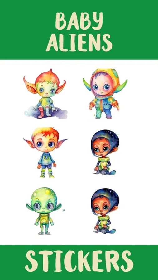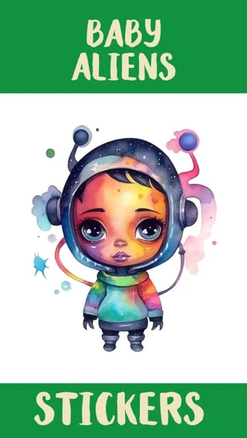 Embark on an intergalactic adventure with our "Cosmic Cuties: Adorable Baby Alien Stickers." This sticker pack brings the charm of cute baby aliens to your digital conversations. Experience the whimsy of these extraterrestrial beings through handcrafted watercolor illustrations that showcase their adorable features and playful personalities. With a delightful assortment of stickers featuring lovable poses, expressive faces, and cosmic landscapes, you'll have an array of options to add a touch of interstellar joy to your messages. Whether you're a fan of outer space, a lover of cute creatures, or simply want to bring a smile to someone's face, these stickers are perfect for expressing your fascination with these adorable baby aliens.