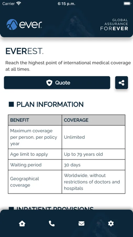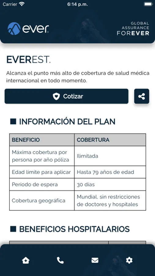 MyInsurace by Ever is a complete and reliable mobile application that gives you instant access to quotes for our health insurance plans, detailed health benefits, and the ability to contact us by phone or email. Designed to provide you with comfort and facilitate the process of quoting our health insurance plans, this application is your best ally to protect your well-being and that of your loved ones.