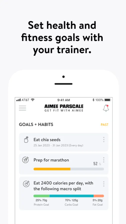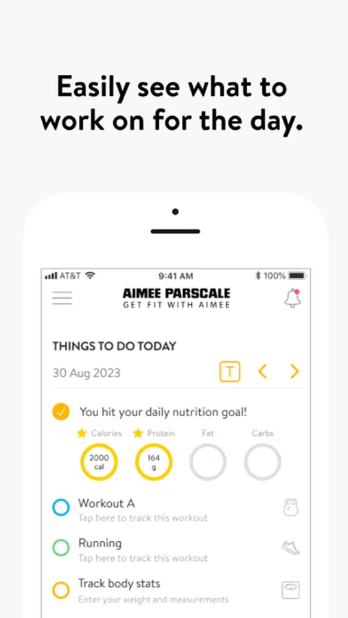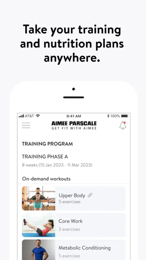 With the Bodyfit with Aimee App, you will have access to workout programs designed specifically to help you reach your fitness and health goals! You can follow & track your workouts, your nutrition, your lifestyle habits, measurements and results–all with the help of your coach.